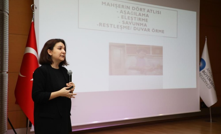 Büyükşehir Belediyesi İnsan Kaynakları ve Eğitim Dairesi Başkanlığı Eğitim Şube Müdürlüğü personel eğitim seminerlerine devam ediyor. Büyükşehir Belediyesi Nikah Salonu’nda gerçekleştirilen ‘Pandemi Sürecinde Ruh Sağlımız’ konulu eğitimde Uzman Klinik Psikolog Fatma Kurt tarafından pandemi ve karantina sürecinin birey ve ailelere olan etkileri konuşuldu.