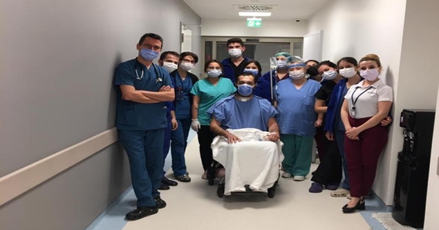 “Gelir gelmez kendisinde rızasını alarak bilgilendirerek solunum cihazına bağlı olarak takip ettik. Yaklaşık 35 güne yakın solunum cihazına bağlı takip ettikten sonra 42’inci gününde genel durumunun iyileşmesi, yoğun bakım desteğine ihtiyacı olmaması üzerine dün itibariyle servise devrettik. Covid süresince çok kaybettiğimiz hasta oldu çok tedavi ettiğimiz hastalarda oldu ama Cihan bey özel durumu hem bizde hem ekibimizde duygusal birikime sebep olan bir hastamızdı. Cihan’ın yoğun bakım ünitesine yatışından sonra 9’uncu gününde eşi hastanemizde bir bebek dünyaya getirdi. Gerçekten bu durum bizi hem strese soktu hem de mutlu etti. Anlatılması zor duygulardı. Hastalığın ilerlemesi ile durumu çok kötüydü. Bebeğin olmasından sonra giderek toparlamaya başladı ve bebeği yaklaşık 25’inci günlerinde iken bir tetkik için yoğun bakım dışına çıkartma sırada kısa süreli gördü. Görmek nasip oldu diyelim. Büyük bir mutluluktu bizler ve ekibimiz için. Toplam 42 günü tamamladıktan sonra dün hastamızı servise çıkardık ve bebeği ile ailesi ile ve büyük kızıyla buluşma anına hep beraber şahit olduk."