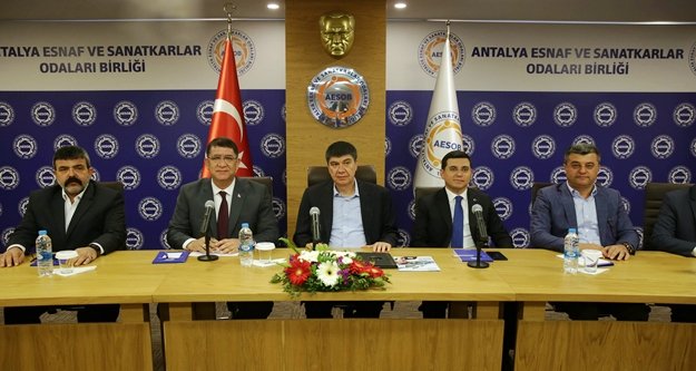 Antalya Büyükşehir Belediye Başkanı Menderes Türel, Antalya Esnaf ve Sanatkarlar Odaları Birliği’nde oda başkanları ile bir araya geldi. “Hepimiz aynı partiye mensubuz hepimizin partisi Antalya partisi” diyen Türel, “Hiçbir siyasi parti gözetmeksizin, ayrımcılık yapmadan Antalya’da herkese hizmet etmeye gayret ettik. Esnafımızla kol kola beraberce güzel çalışmalara imza attık. Hedefimiz Antalya’yı bir dünya şampiyonu haline getirmek. Tarımda, sanayide, ticarette her cephede bir dünya devi yapmak. İdeallerimiz, hayallerimiz büyük. Antalya huzur ve refah şehri olmalıdır” ifadelerini kullandı.