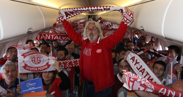 Antalyaspor, pazar günü Çaykur Rizespor ile deplasmanda oynayacağı maç için özel uçakla Trabzon'a oradan da karayoluyla Rize'ye gitti. Kırmızı-beyazlı takımının yöneticileri, teknik heyet, futbolcular, gazeteciler ve taraftarlarla birlikte yolculuk yaptığı uçakta eğlenceli anlar yaşandı. Marşlar eşliğinde seyahat eden 171 kişilik kafile, tezahüratlarla takımı destekledi. Uçakta yer alan minik bir taraftar ise Eto'o'ya sürpriz doğum günü kutlaması yaptı. Dün 36. yaşını kutlayan Eto'o'ya 6 yaşındaki hayranı Emir, pasta getirdi.