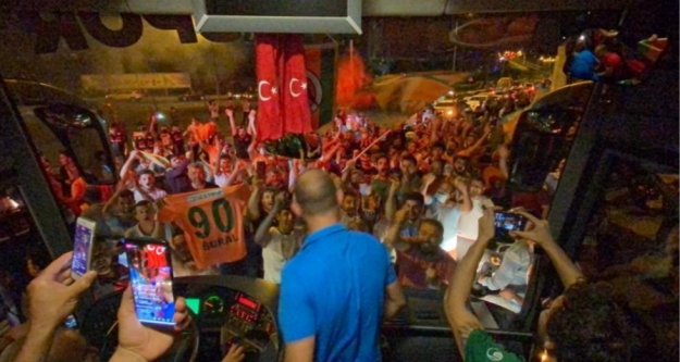 Takım otobüsün önünü kesen bir grup taraftar meşaleler yakarak, oyunculara ve teknik heyete sevgi gösterisinde bulundu.
