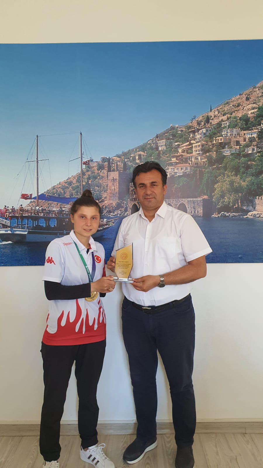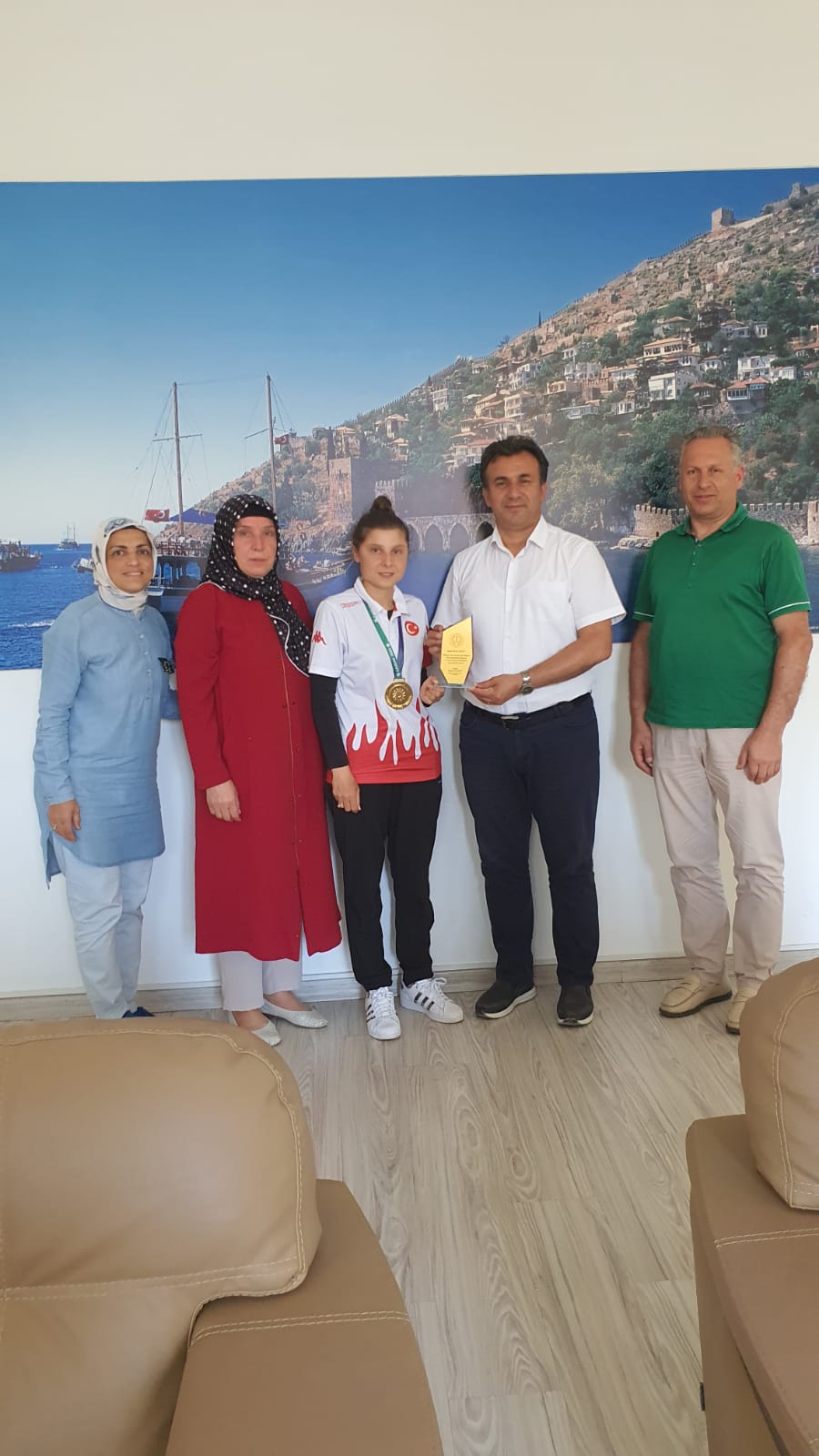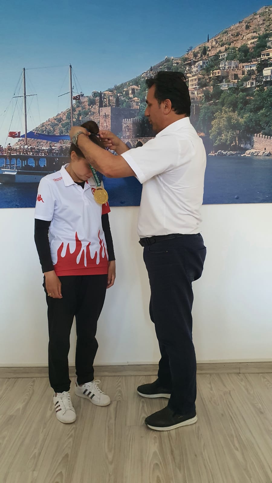 Alanya İlçe Milli Eğitim Müdürü Yusuf Yılmaz'ın madalya takdim ettiği Milli Tekwandocu, Merve Yazıcı, Brezilya'da 1-15 Mayıs tarihlerinde düzenlenen 24. İşitme Engelliler Yaz Olimpiyat Oyunları'nda (Deaflympics) altın madalya kazanarak olimpiyat şampiyonluğunu elde etti. Alanya Milli Eğitim Müdürlüğü'nden yapılan açıklamada şu ifadelere yer verildi: 'Alanya Mahmutlar Halil Ülker Ortaokulu Beden Eğitimi Öğretmeni, Milli Tekwandocu, Merve Yazıcı, Brezilya'da 1-15 Mayıs tarihlerinde düzenlenen 24. İşitme Engelliler Yaz Olimpiyat Oyunları'nda (Deaflympics) altın madalya kazanarak olimpiyat şampiyonluğunu elde etmiştir. Avrupa ve Dünya Şampiyonlukları da bulunan milli sporcumuz olimpiyat şampiyonu olarak başarılarına bir yenisini daha ekleyerek bizleri gururlandırmıştır Kendisini en içten dileklerimizle tebrik ediyoruz.'