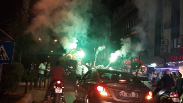Alanyaspor'un Adana Demirspor'u penaltı atışları ile geçip Süper Lig'e çıkması Alanya halkını coşturdu. Araçlarla sokaklara çıkıp konvoy yapan halk şampiyonluğu kutluyor.