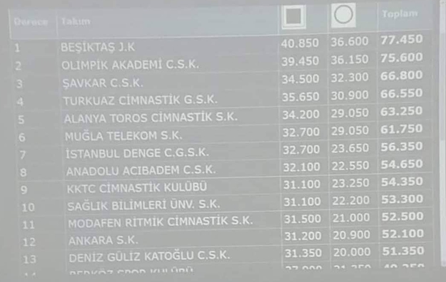Çok güçlü rakiplerle yarışan Alanya Toros Cimnastik Spor Kulübü 63,250 toplam puanla 5.oldu.