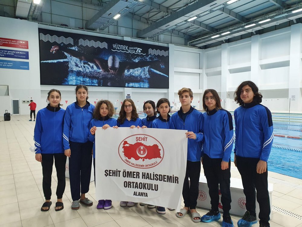 Alanya Şehit Ömer Halisdemir Ortaokulu öğrencileri Antalya'da düzenlenen Ortaokullararası Yüzme Yarışması'nda ikinci oldu. 2 kupa ve 36 madalya ile Antalya ikincisi olan Şehit Ömer Halisdemir Ortaokulu öğrencileri Alanya'ya büyük gurur yaşattı.