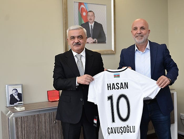 Bakü’deki futbol okulunun açılışının ardından Alanyaspor Başkanı Hasan Çavuşoğlu, Azerbaycan Futbol Federasyonları Birliği (AFFA) Başkanı Rönneg Abullayev’i ziyaret etti. Ziyarette Türkiye Futbol Federasyonu (TFF) Yönetim Kurulu Üyesi Hasan Akıncıoğlu da eşlik etti. AFFA Başkanı Rönneg Abullayev ile bir süre sohbet eden Başkan Çavuşoğlu, Azerbaycan ile ikili ilişkilerin çok önemli olduğunu vurguladı. Ziyarette karşılıklı forma takdimi de yapıldı.