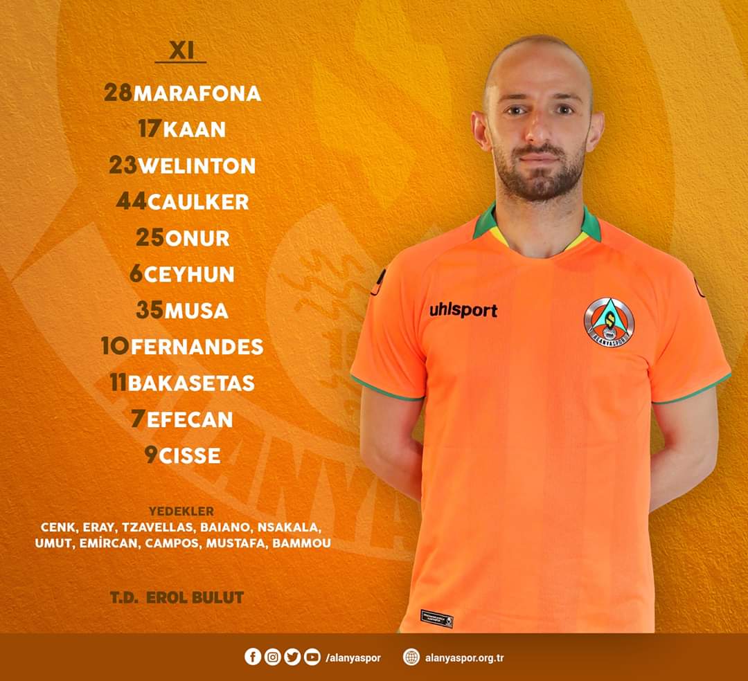 Maça temsilcimiz Aytemiz Alanyaspor, kalede Marafona, savunmada Kaan, Welinton, Caulker, Onur, orta alanda Ceyhun, Musa, Bakasetas, hücumda Efecan, Fernandes ve ileri uçta da Cisse ilk 11'i ile başlayacak.