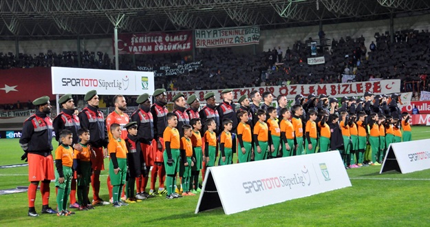 Süper Toto Süper Lig’in 15’inci haftasında Alanyaspor ile Akhisar Belediyespor maçı öncesi futbolcular sahaya asker ve polis kıyafetleri ile çıktı.
