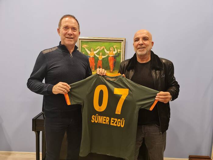 Aytemiz Alanyaspor Kulübü Başkanı Hasan Çavuşoğlu, ünlü Türk Halk Müziği Sanatçısı Sümer Ezgü’ye, Antalya’nın Konyaaltı ilçesine taşınan Sümer Ezgü Sanat Akademisi’nin yeni yerinde 'hayırlı olsun' ziyaretinde bulundu. Sümer Ezgü ve kardeşi Taner Ezgü’ye başarılar dileyen Başkan Hasan Çavusoğlu, üzerinde isimleri yazan Alanyaspor formasını hediye etti. Ezgü kardeşler ise ziyaretten duydukları memnuniyeti dile getirerek, teşekkür ettiler.