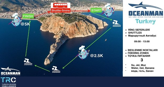 Toros Dağları ile Akdeniz’in maviliği arasında yer alan cennet belde Alanya, Keykubat ve Kleopatra arasındaki efsanevi parkuru ile adından söz ettirecek.  Oceanman Türkiye, 5 ve 10 kilometre yarışları Keykubat ve Kleopatra Plajları arasında yapılacak. Yüzücüler Alanya Kalesi çevresinde, ‘Around The Castle’ sloganıyla efsanevi parkuru deneyimleyecek. Keykubat Plajı’ndan verilecek start ile Alanya kalesi çevresinde yüzüp, Kleopatra Plajı’nda 5K Half Oceanman tamamlanacak. 10K Oceanman yüzücüler ise Kleopatra Plajı’nda beslenme noktasında soluklanıp Keykubat Plajı’na geri yüzecekler.