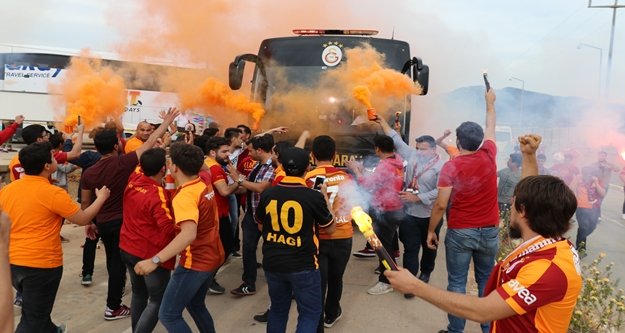 Kafileyi taşıyan otobüsün hareketinde de meşalelerden bir koridor oluşturan taraftarlar, “Güneş o gün şampiyonluk için doğacak” yazan pankart açarak tezahürat yaptı.