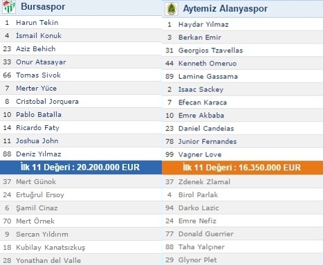 Bursaspor Aytemiz Alanyaspor maçının kadroları açıklandı.
