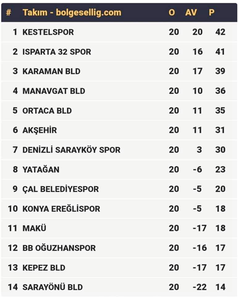 Bu sonuçla geçtiğimiz hafta Isparta 32 Spor'a kaptırdığı liderlik koltuğunu da devir alan mavi beyazlı ekip, Isparta 32 Spor'un Konya Ereğlispor deplasmanında berabere kalması ile rakibinin 1 puan önünde zirveye kuruldu. Güncelleme Tarihi: 01 Mart 2020, 16:04