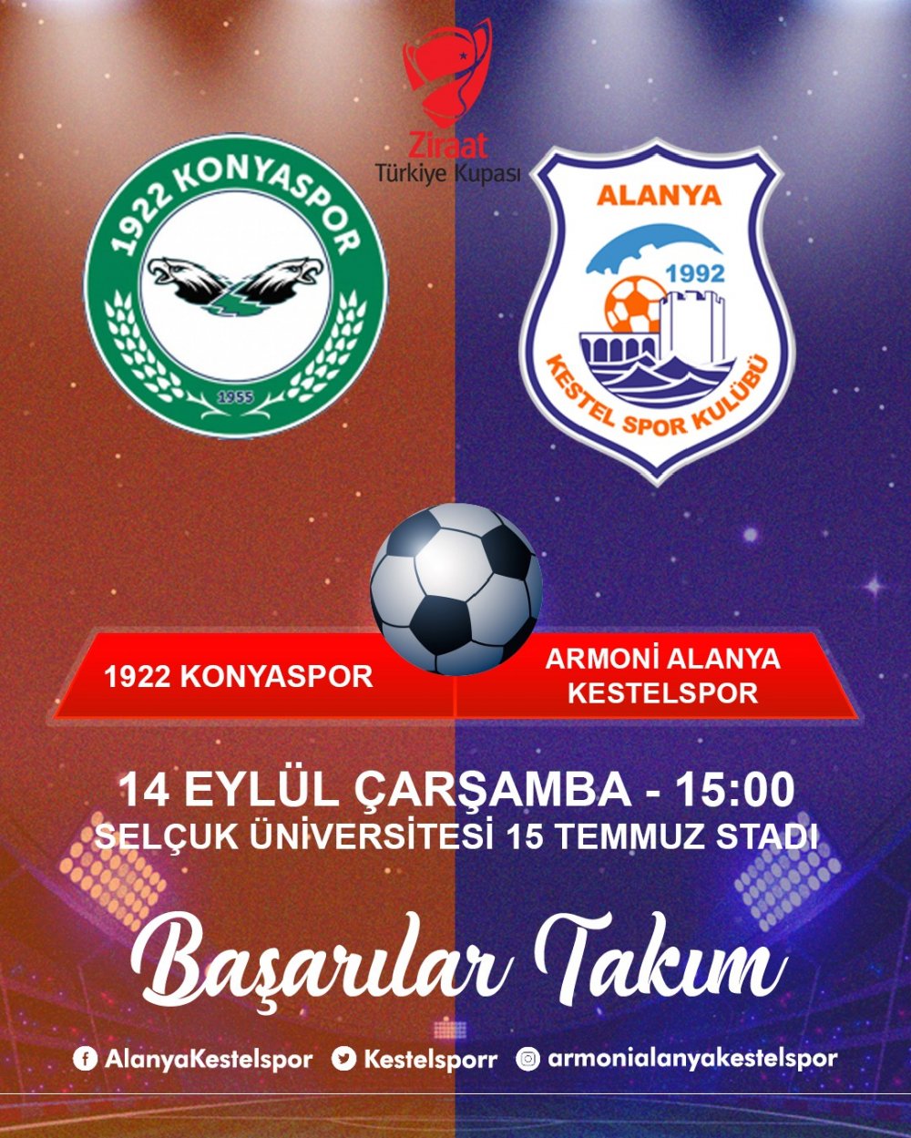 Hafta sonu Gümüşhanespor ile oynanacak olan zorlu deplasman maçı göz önüne alınarak kafileye ligde ilk 11 de oynayan oyuncularımız dahil edilmemiş; altyapı U-19 takımından 5 oyuncu kupa maçı kadrosuna dahil edilerek 17 kişilik genç kadro ile kupa maçında mücadele edeceğiz.