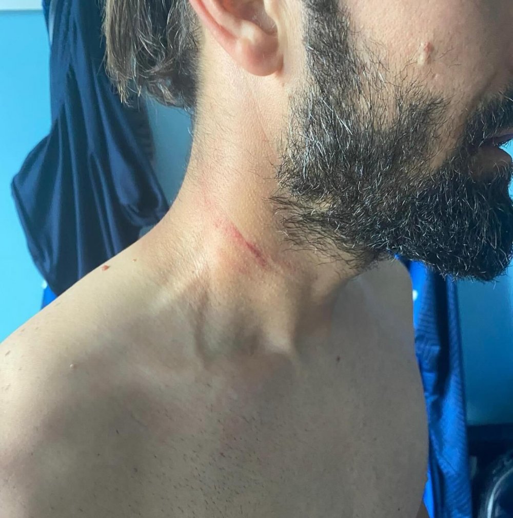 1- Takımımız stadyuma geldiğinde soyunma odası ve koridorlarda rakip takım futbolcusu, kulüp çalışanları ve yaka kartları bulunan bir çok kişi tarafından saldırıya uğramıştır. Bu esnada rakip takım futbolcularından 72 numaralı forma giyen Mansur Çalar elinde jiletle oyuncularımıza koridorda saldırmış, darp etmiş ve yaralamıştır.