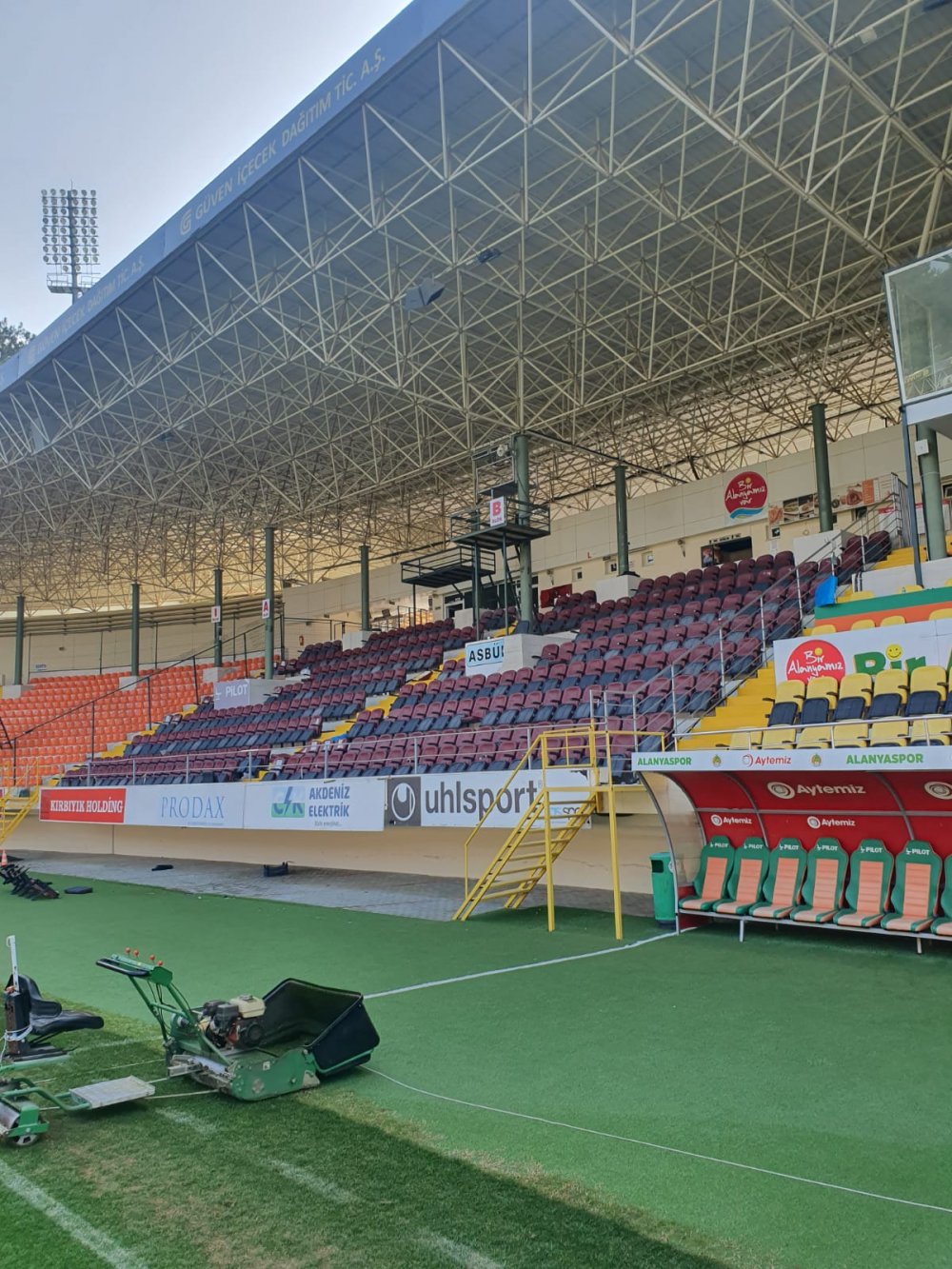 Gençlik ve Spor Bakanlığı, Alanya Belediyesi ve Aytemiz Alanyaspor Kulübü işbirliğiyle Bahçeşehir Koleji Stadyumu’nda yapılan protokol ve VIP tribünlerindeki yenileme çalışmaları tüm hızıyla sürüyor. Güney VIP tribününün koltukları yenilenirken, kuzey VIP tribününe de eski koltuklar yerleştirilmek suretiyle ikinci VIP tribünü oluşturuldu. Ayrıca protokol tribünü de A ve B protokol şeklinde yeniden düzenleme yapılıyor. Bakanlık tarafından yapılan çalışmalara Alanya Belediyesi ve Aytemiz Alanyaspor Kulübü ilave katkılarda bulunuyor.