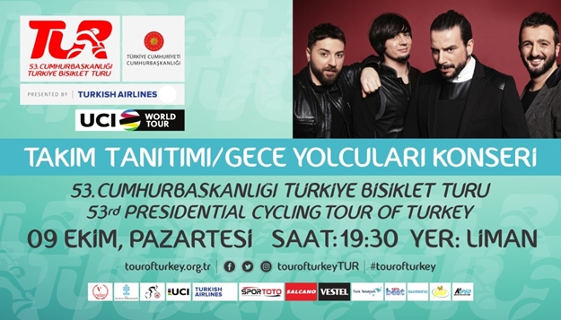 09 Ekim Pazartesi günü yapılacak olan Cumhurbaşkanlığı bisiklet turu takım tanıtımı saat: 18.00 de iskele şelale önünde başlayacak. Saat 19.30'da Alanya limanda Gece Yolcuları konseri ile devam edecek.