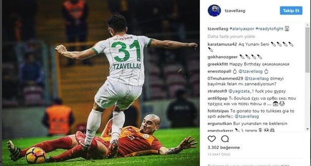 Alanyasporlu futbolcu Tzavellas, Galatasaray'ın Türkiye Kupası'nda dün akşam Sivas Belediyespor'la oynadığı maç sırasında olay bir paylaşıma imza attı.