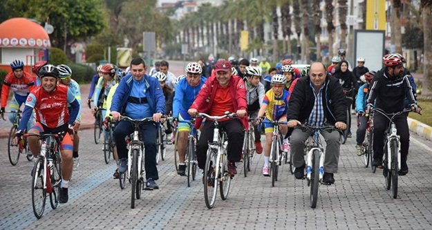 Alanya Belediye Başkanı Adem Murat Yücel, MHP İlçe Teşkilatı Başkanı Mustafa Türkdoğan, Bisiklet Federasyonu Başkanı Erol Küçükbakırcı, Alanya Belediyesi Spor Müdürü Levent Uğur ve vatandaşlar bisiklet sürerek başladı.  Atatürk Anıtı önünde start alan halk bisiklet sürüşü,Çimen Otel Önünden dönüş ve İskele yolundan Anıt önünde sonlandı.