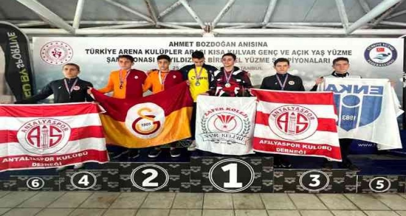 Yüzücüler Antalyaspor bayrağını kürsüye taşıdı