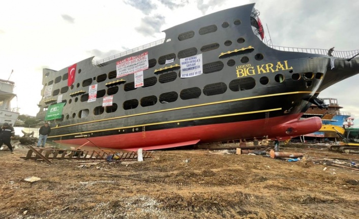 Antalya’da yapımı tamamlanan ve dünyanın en büyük tur teknesi olma özelliğini taşıyan bin ton ağırlığındaki ‘Big Kral’ suya indirildi.