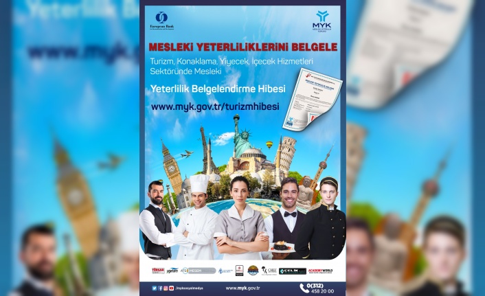 Turizm, konaklama, yiyecek içecek hizmetleri sektöründe çalışanlara yönelik, sınav ücretleri hibe desteğinden karşılanmak üzere MYK Mesleki Yeterlilik Belgesi sınavları için başvuru alınacaktır.