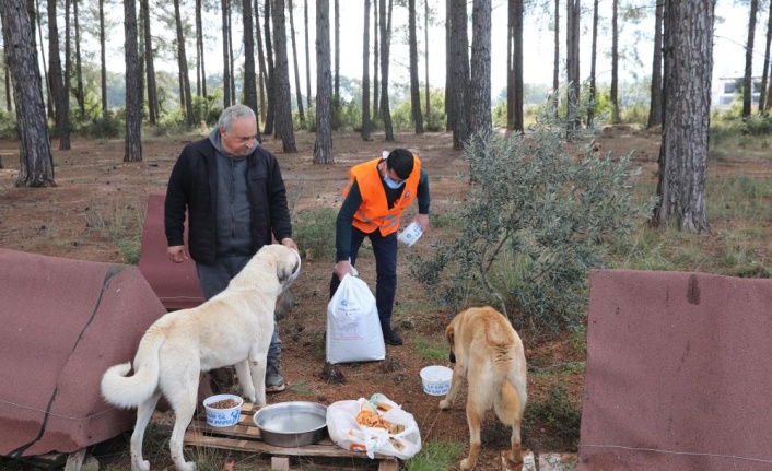 Antalya Büyükşehir Belediyesi, Düzlerçamı’nda yer alan ormanlık alanda yaşayan hayvanları soğuk kış aylarında da unutmuyor. Hayvanseverlerin de katkısıyla besleme noktalarına mama bırakan Büyükşehir ekipleri, köpekleri elleriyle besledi.