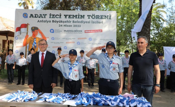 Antalya Büyükşehir Belediyesi tarafından ilk kez başlatılan izcilik faaliyetleri bünyesinde 15 haftalık eğitimlerini tamamlayan 70 izci adayı Zeytinpark’ta düzenlenen törenle yemin etti.