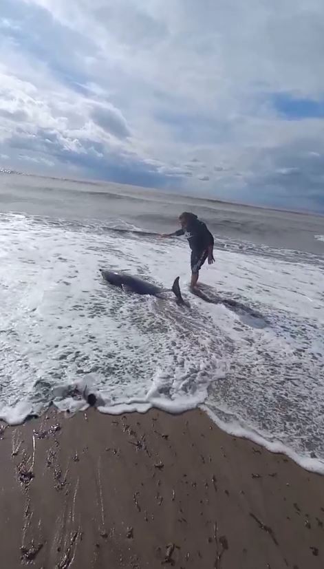 Yunusun denize geri dönmesini sağlayan İhsan Gökgöz, "Sahilde çalışırken balık gördüm. Yanına gidince yunus balığı olduğunu fark ettim. Kenarda duruyordu. Canlı, 1.5 metre boyundaydı. Üzerimi çıkartarak denize doğru çektim. Gidene kadar bekledim" dedi.